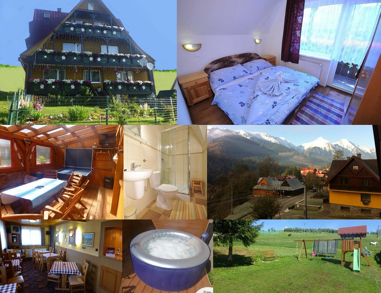 Zakwaterowanie: Rodinný penzión s domácou kuchyňou. V penzióne sú 2- až 4-lôžkové izby s TV, vlastnou kúpeľňou a WiFi pripojením. Niektoré pokoje sú s balkónom a nádherným výhľadom na Belianské Tatry. Parkovanie vo dvore penziónu. Kryté vonkajšie posedenie, ping-pong. Detské ihrisko s pieskoviskom, jacuzzi.