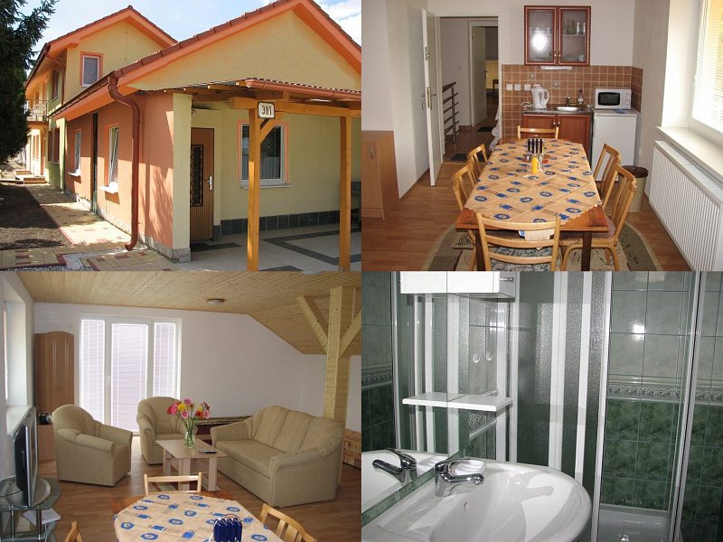 Zakwaterowanie: Apartmány (5x) s celoročnou prevádzkou, s celkovou kapacitou 17 lôžok + 8 prísteliek (pohovky). Apartmány sú zariadené novým nábytkom v roku 2007, sú s vlastným soc. zariadením, kuchynským kútikom (mikrovlnka, varič, rýchlovarná kanvica, chladnička), farebným TV, DVD, rádiom s CD. Dva balkóny. Spoločenské hry. Vonkajšie posedenie v altánku (grilovanie a opekanie vrátane prípravy gulášu). Areál je oplotený a uzamykateľný (parkovanie vo dvore). Zdarma fitnes miestnosť (stacionárny bycikel, stepper, činky). Húpačky, pieskovisko a trampolína pre deti. Internet zdarma.