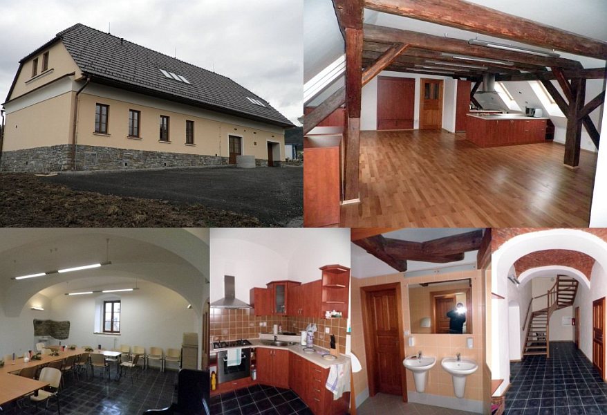 Zakwaterowanie: V podkroví: 2 pokoje o kapacitě 15 a 10 osob, sociální zařízení včetně sprchovacích koutu, plně vybavena kuchyňka (indukční varní deska, lednička, myčka, mikrovlnka a trouba). V přízemí: velka místnost o kapacitě 35-40 osob, která slouží jako společensky sál nebo jídelna, menší místnost vybavená výpočetní technikou (internetová kavárna), kuchyň (kombinovaná varní deska, lednička, myčka, mikrovlnka a trouba), sklad-garáž a WC (také pro imobilní). Objekt je v provozu celý rok (topeni plynové, kachlová kamna, v přízemí podlahové topení). Kuchyně jsou vybaveny pro přípravu jídla pro 40 lidí. V celé budově je přípojka internetu. Velká záhrada pro postavení stanů, táborák atd.